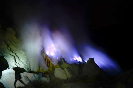 Kawah Ijen volcano, East Java - blue sulfur flames.