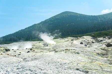 fumarole field on the slope of Mendeleev volcano, Kunashir island