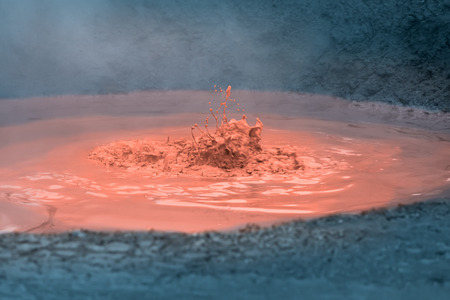 Closeup of The red clay turns hot as super heated sulphur gas comes to the surface at geothermal area Hverir.