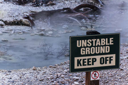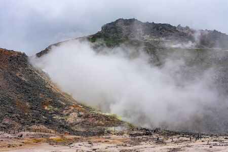 Way to hot spring of Noboribetsu Jigokudani (Hell Valley): The volcano valley got its name from the sulfuric smell, extremely high heat and steam spouting out of the ground in Hokkaido, Japan.