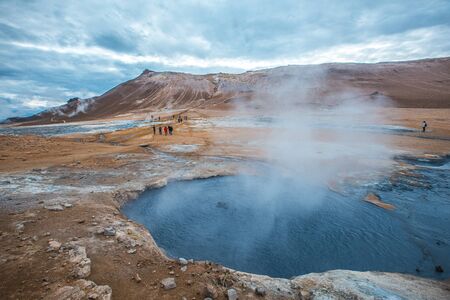 Tourists visiting the Myvatn park, one of the most special parks on the island of Iceland