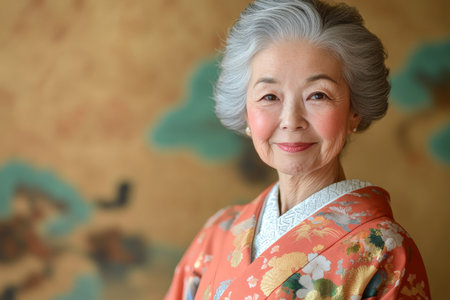 Asian elegant elderly woman in traditional kimono