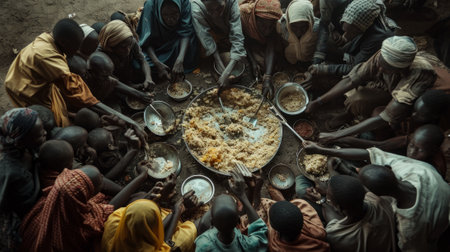 A group of young women in colorful cultural attire share a traditional meal, celebrating Nowruz with joy and friendship. They display the festive spirit of this ancient festival.
