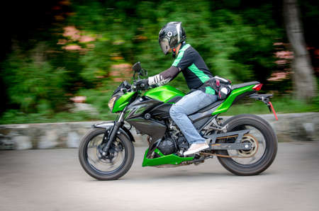 Unidentified rider with motorcycle Kawasaki versys 650 at chaing rai, Thailand. 30