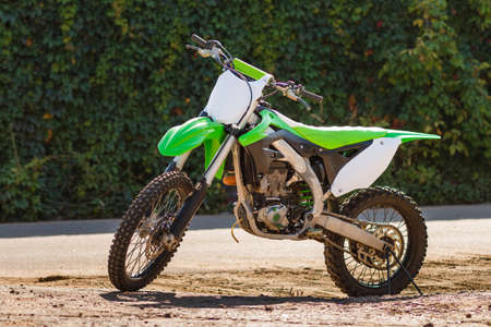 Green Cross Motorcycle. Dirt bike on a photo shoot. Training motocross bike.