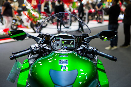 Nonthaburi, Thailand - March 24, 2022: View of Kawasaki Ninja H2 SX SE+ speedometer displayed in Motor Show 2022