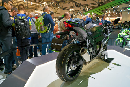 MILAN, ITALY - NOVEMBER 11, 2017: Kawasaki Ninja ZX-10R SE motorcycle is displayed at EICMA 2017 - 75th International Motorcycle Exhibition