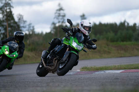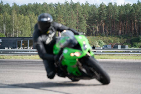 10-06-2020 Riga Latvia Motorcycle practice leaning into a fast corner on track.