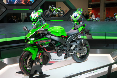 Milano, Italy - 2021 11 27: Eicma Milano Bike Expo Kawasaki zx 10-r. High-quality photo