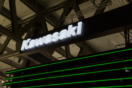 MILAN, ITALY - NOVEMBER 13: Detail of Kawasaki stand at EICMA, international motorcycle exhibition on NOVEMBER 13, 2016 in Milan.