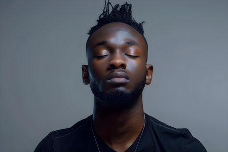 African man meditating eyes closed appearing connected to a higher power. Concept Meditation, African Man, Spiritual Connection, Inner Peace, Higher Power