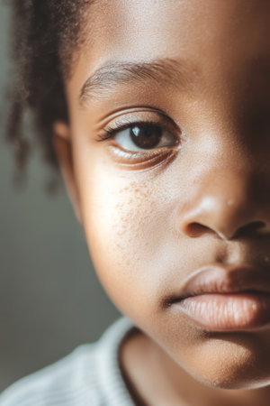 Portrait of a person of African ethnicity with bright facial features, an expression of warmth and confidence. Ethnic style and culture.