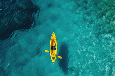 Aerial view of a kayak on the turquoise water