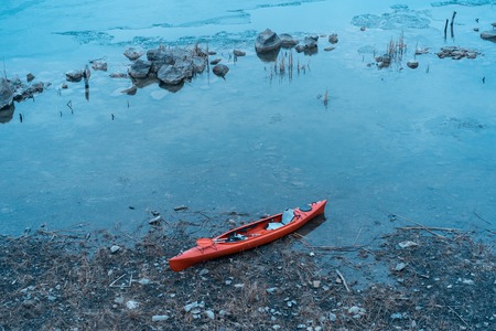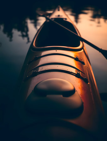 kayak on the river in the evening, closeup of photo