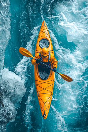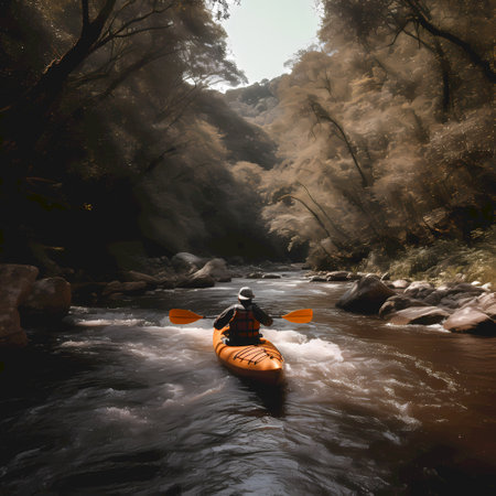 Adventurous kayaker navigating a mountain river embracing the thrill of extreme sports