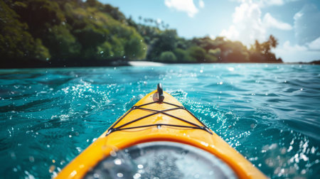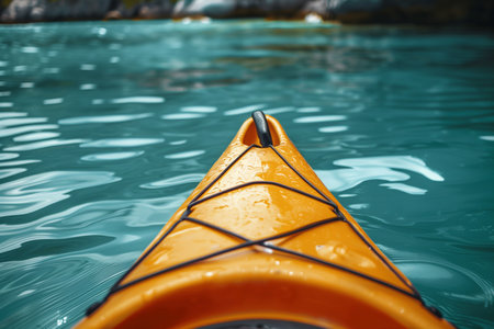 Close up of kayak on turquoise water. Active lifestyle concept