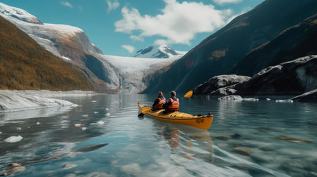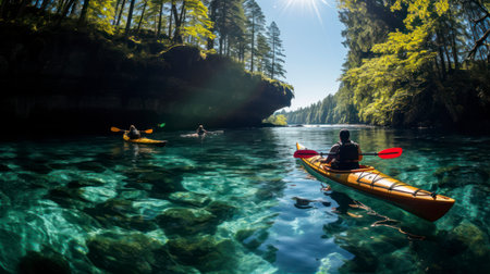 kayaking on the river. Outdoor summer vacations. Holiday travel activities. Discover the beauty of earth, generative ai
