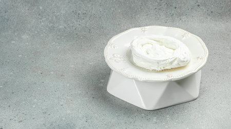 Fresh meringue in light bowl on a dark background.