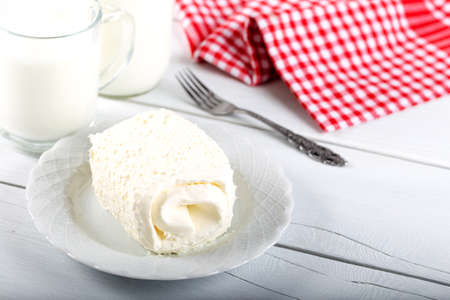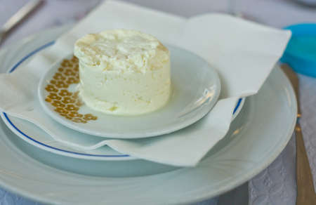 Portuguese cottage cheese on the white plate, Elvas, Portugal