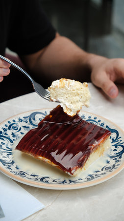 Eating dessert at a cafe with a fork in hand