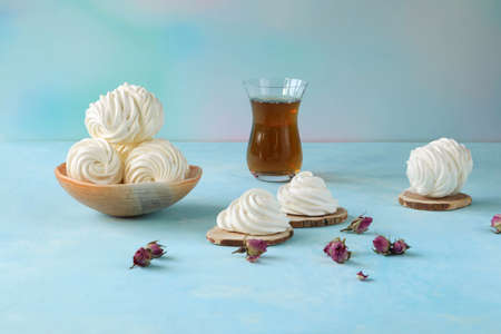 White zephyr with tea and rose flowers