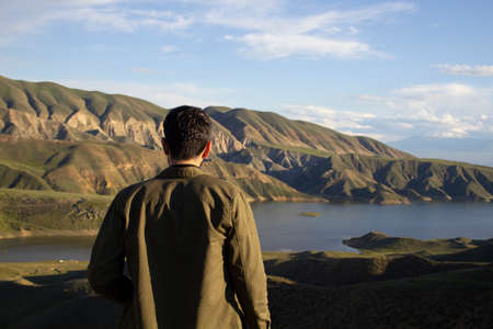Landscape of mountains and lake in Kyrgyzstan, Central Asia