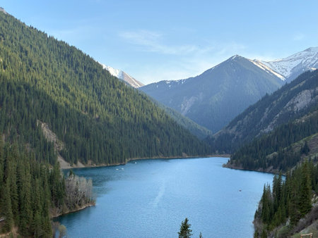 Lower Kolsay Lake, photographed at the Kolsai Lakes National Park in North Slope of Tian Shan Mountains, Almaty, Kazakhstan