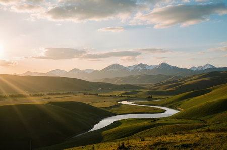 Sunset in the mountains of Kyrgyzstan, Central Asia