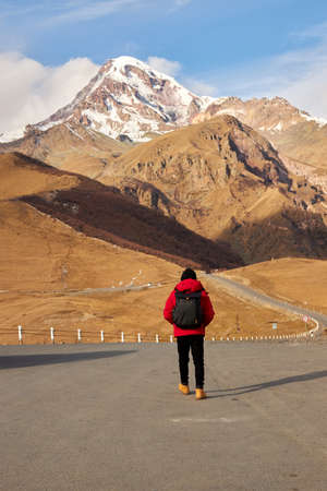 Autumn view of Kazbek mountain in Georgia. beautiful mountain landscape
