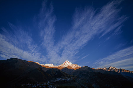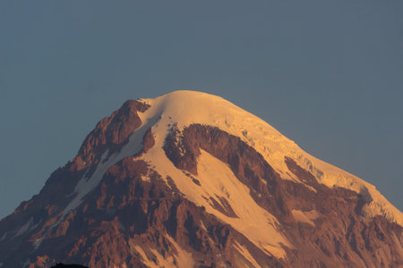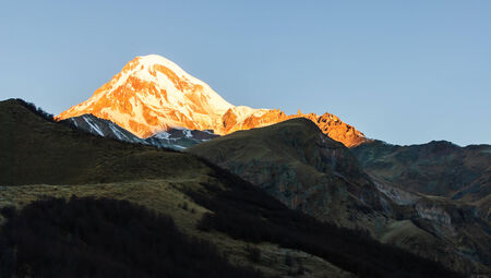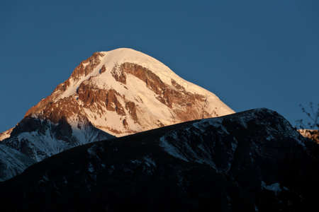 Mount Kazbek in the first light of a day, Caucasus Mountains, Georgia, Europe
