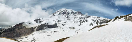 View of Mount Rainier summit covered by snow from Skyline trail, Washington, USA