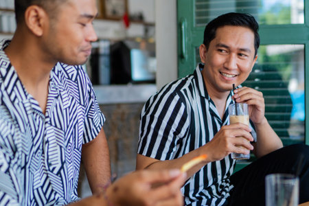Lively friends laugh and chat over drinks in a vibrant, energetic cafe full of warmth