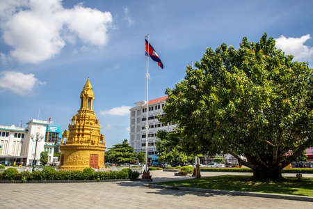 the Independence Monument at the Sihanouk Bouelvard in the city of Phnom Penh of Cambodia. Cambodia, Phnom Penh, November, 2017,