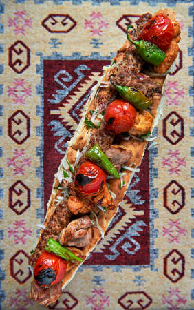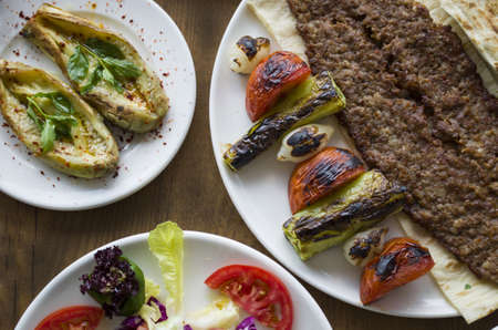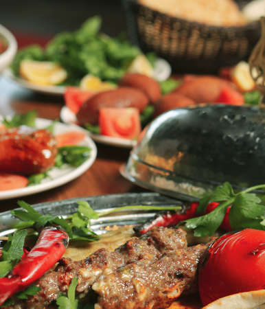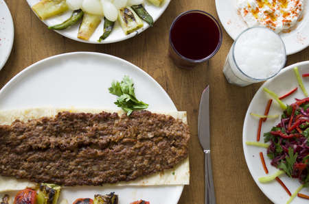 Traditional Turkish foods; Adana kebab, grilled meat