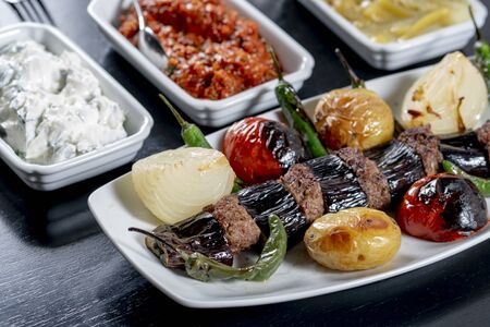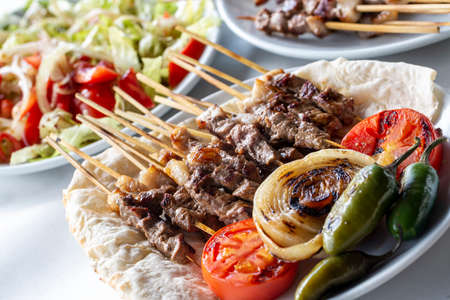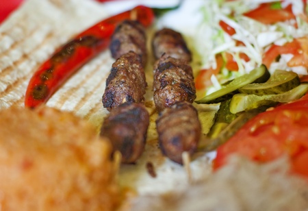 Traditional delicious Turkish foods; skewers cop fog