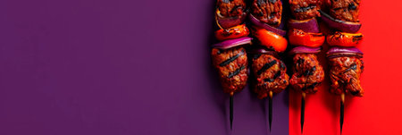 Vibrant skewers of seasoned meat on sticks, inspired by pantonepunk style, a culinary delight