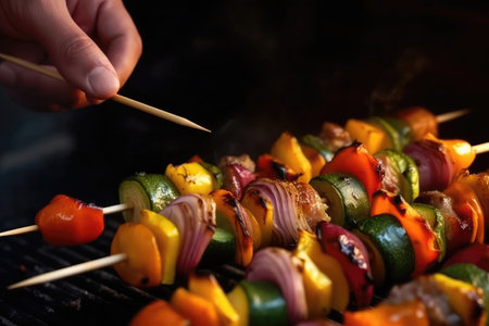 top view of grilled vegetables on a skewer, created with generative ai