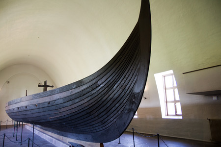 Part of old wooden viking boat in norwegian nature. Tourism and traveling concept