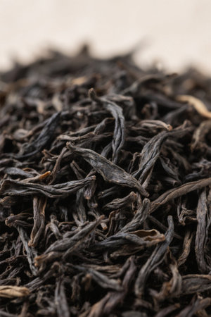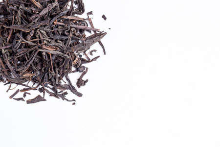 Black tea, dried leaves of a breakfast drink. Black tea dried leaves as a food backdrop for your design