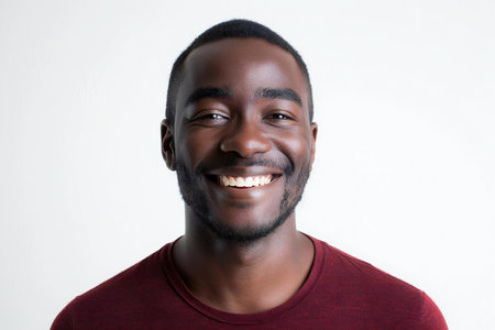 Portrait of a young african american man smiling against white background