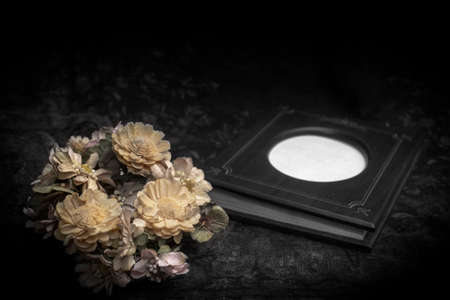 Flowers haggard with photo book , still life