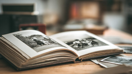 Vintage photo album with family memories and floral design. That the image is generated using AI.