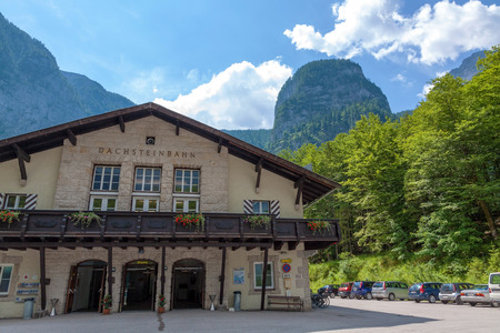 Obertraun, Austria - June 27, 2014: Valley station of the Dachstein ropeway, a famous tourist destination of Salzburger Land for hikers.