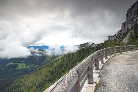 Road curve above Altaussee and Austria alps. Loser panoramastrasse area