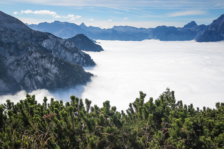 Panorama of the Bavarian Alps with the sea of clouds around Eagle nest, Germany