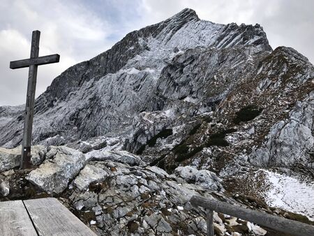 Big crucifix on Zugspitze (top of Germany) in Germany.