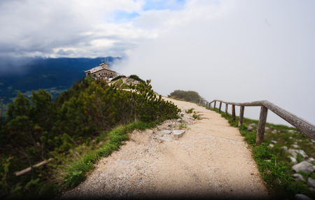 Kehlsteinhaus, Eagle Nest, Berchtesgaden in Germany, history place beautiful landscape on mountain peak with mist, cloudy background