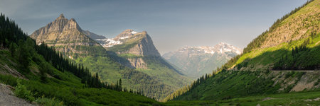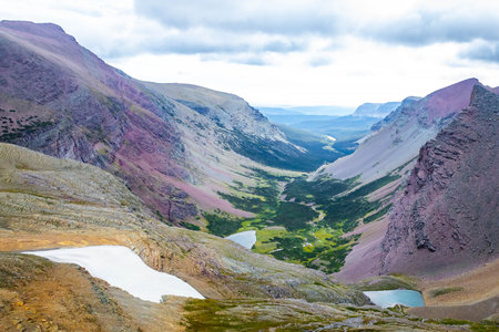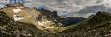 Panoramic view of the Mountain's valley from Siyeh Pass Trail in Glacier National Park