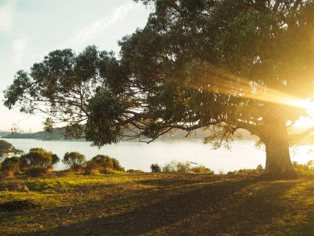 sunny Australian beach in Cremorne, Tasmania looking beautiful and deserted in winter