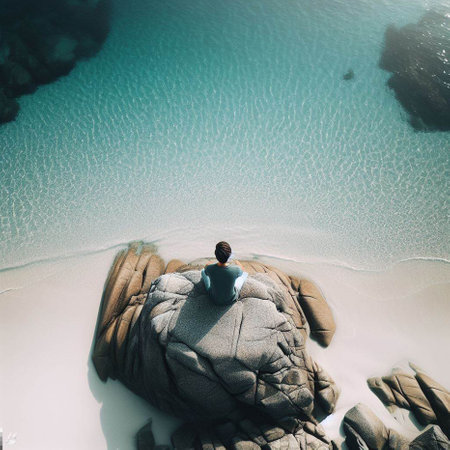 A breathtaking aerial view of waves crashing on a sandy beach, creating a beautiful water and rock landscape art in the world AIG50